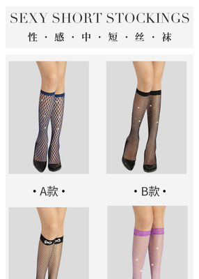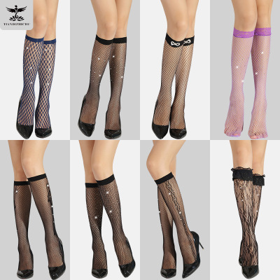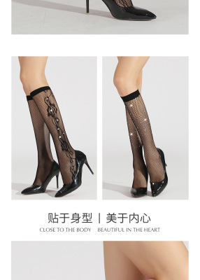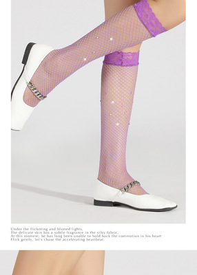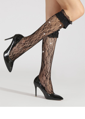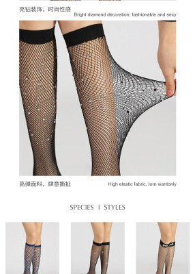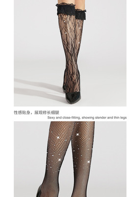 網襪燙鑽過膝襪中筒襪帶鑽黑色鏤空情趣蕾絲長筒襪花邊漁網襪子