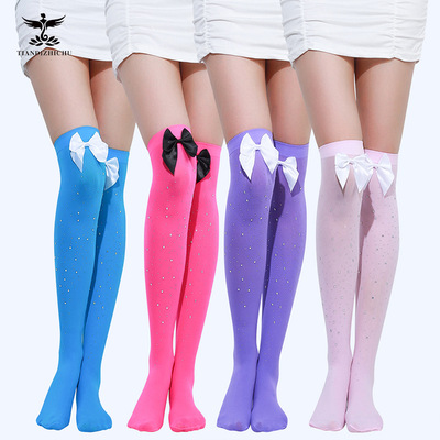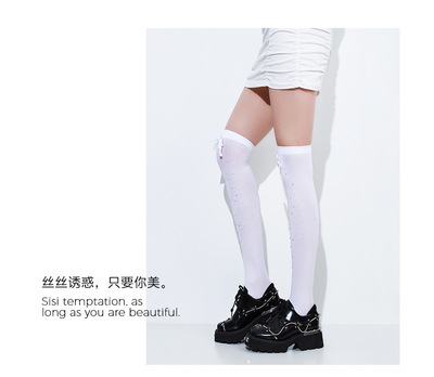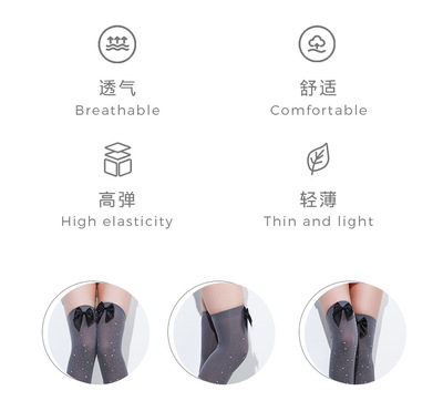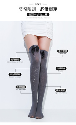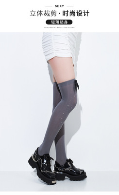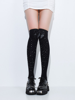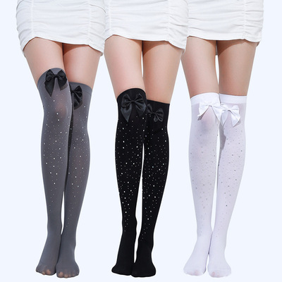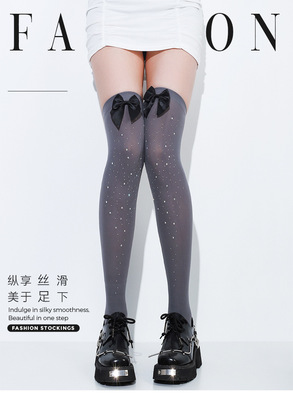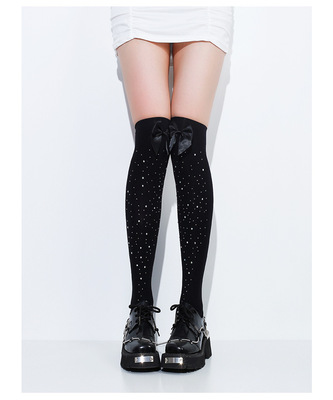 黑色ins網紅甜美蝴蝶結多色帶鑽大腿絲襪春秋款黑絲可愛長筒過膝