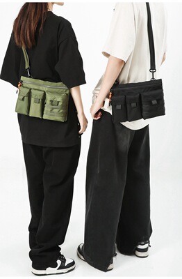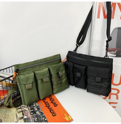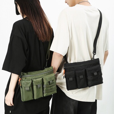 Workwear Courier Bag for Men, Large Capacity, Hong Kong Style Retro Crossbody Bag, 2023 New Arrival, Multi-Pocket Tactical Canvas Shoulder Bag