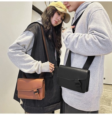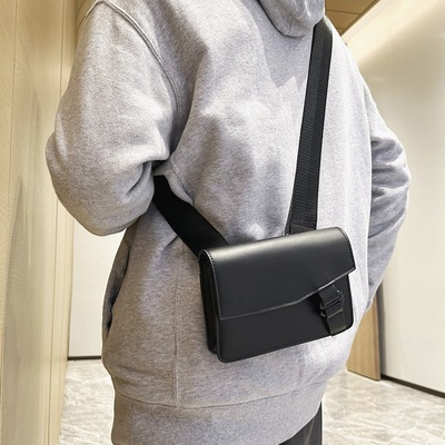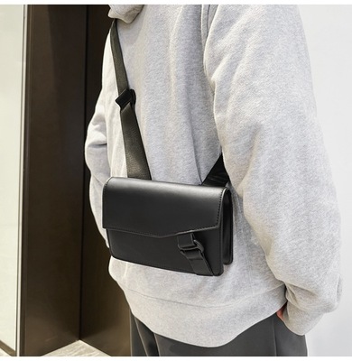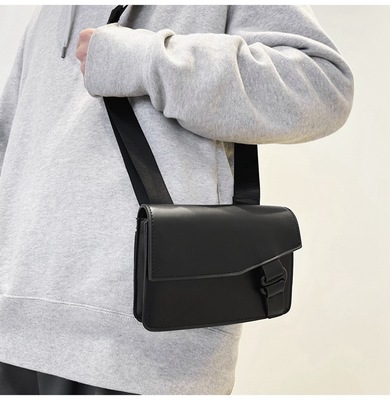 PU斜挎包男2024新款休閒郵差包韓版潮牌單肩包簡約手機小方包跨境