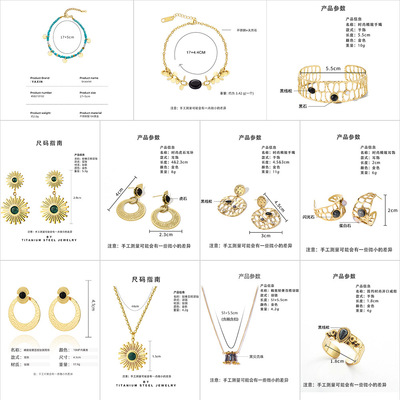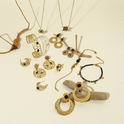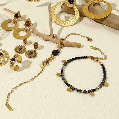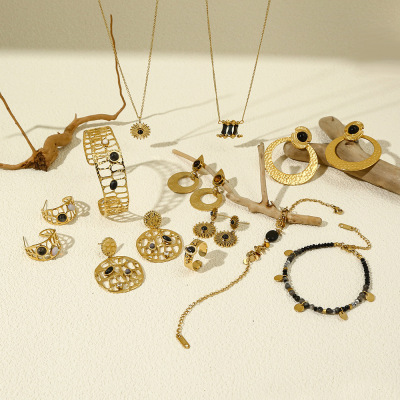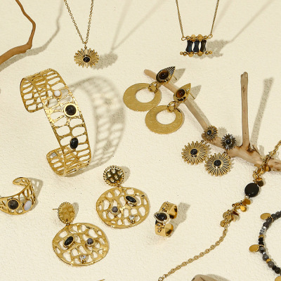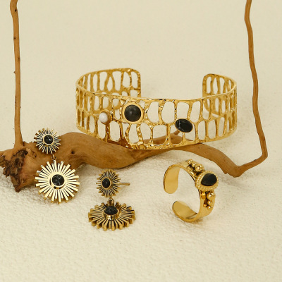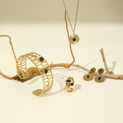 Elegant Sunflower Black Series Natural Stone Necklace, Bracelet, and Earrings Set for Women - Unique Fashion Accessory Set with Cross-border Shipping