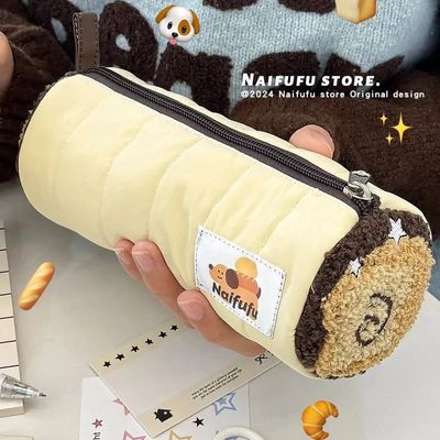 小紅書奶芙芙麵包小狗筆袋毛巾繡可愛高顏值大容量文具收納袋