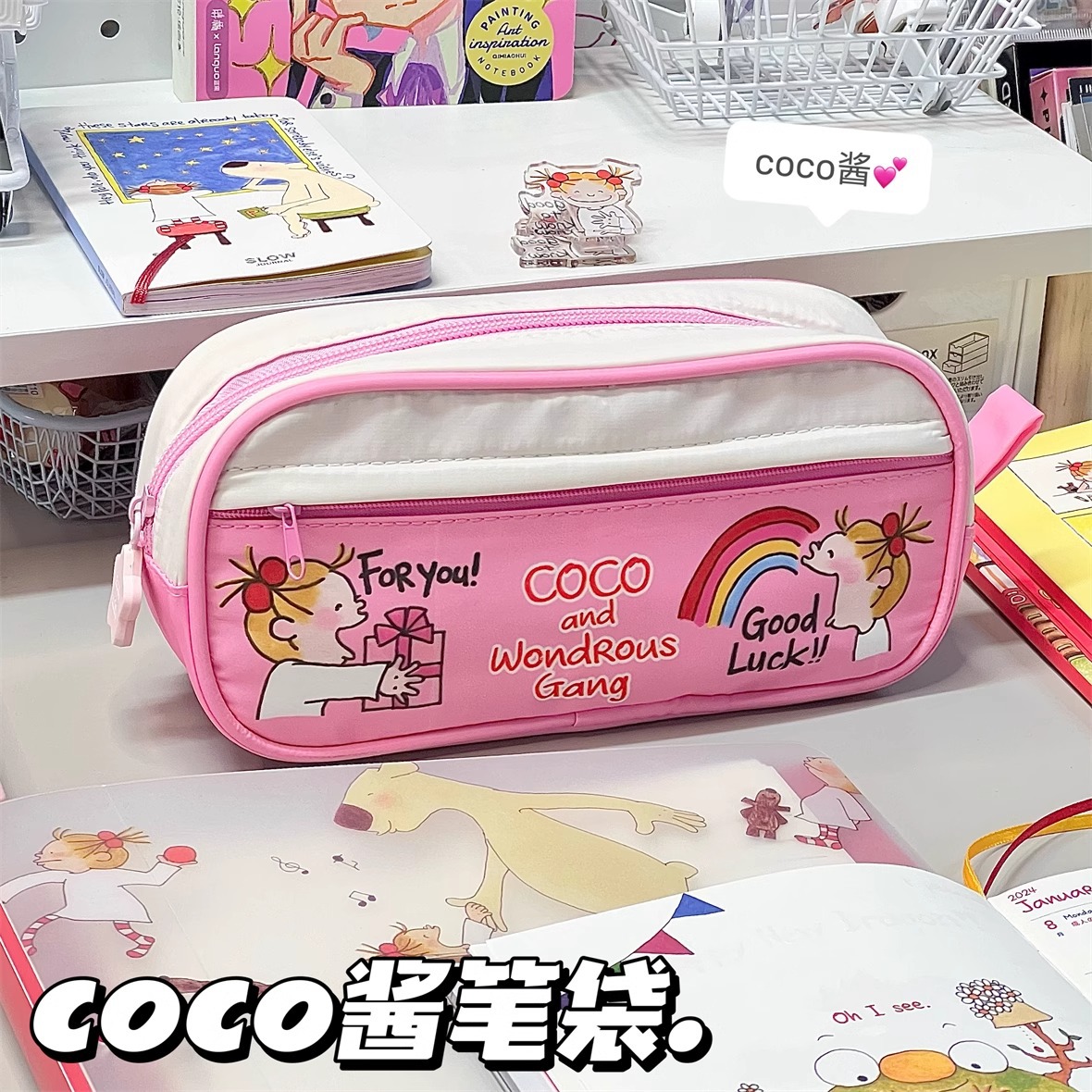 2024新款CoCo醬新年筆袋抽繩文具盒小眾高顏值桌面收納袋大容量