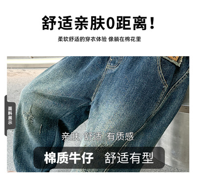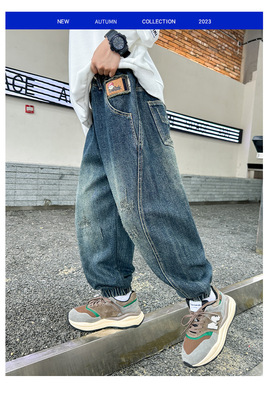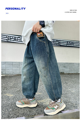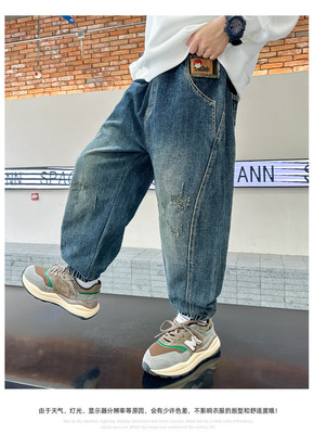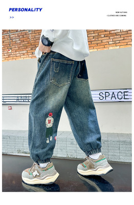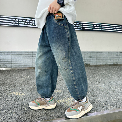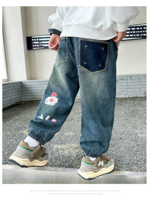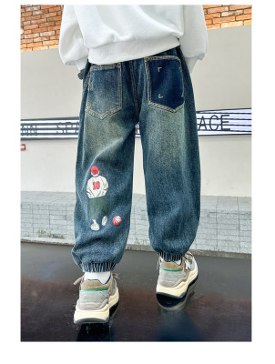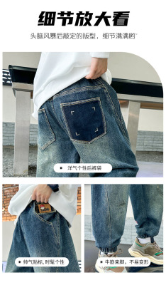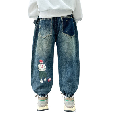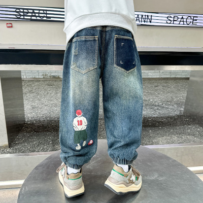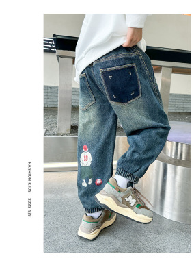 Boys' Pants Spring and Autumn 2023 New Model Medium and Large Children's Casual Clothes Streetwear Straight Leg Jeans