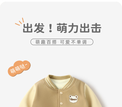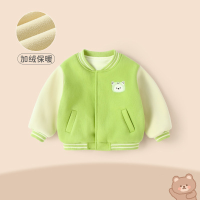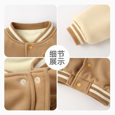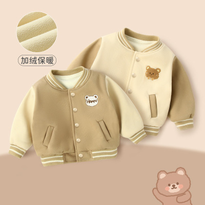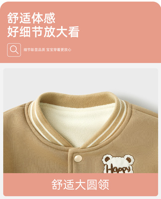 秋冬新款寶寶加絨外套嬰兒加厚棒球服男女童兒童外出衣服上衣童裝