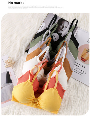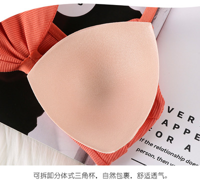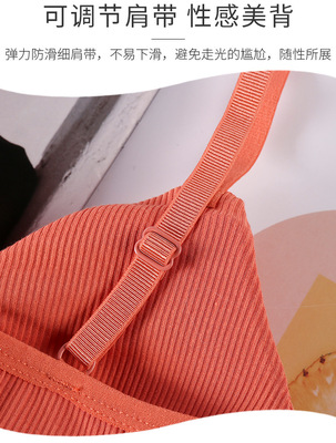 法式三角杯美背螺紋裹胸純棉打底吊帶抹胸防走光夏可調節少女背心