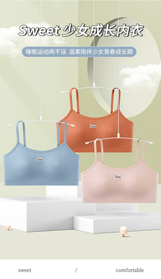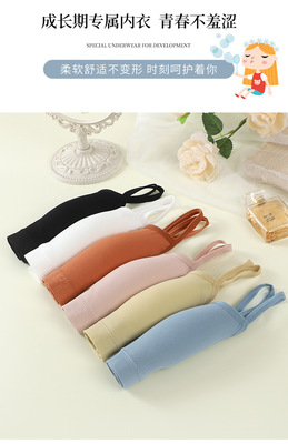 Korean-style lettered girly lingerie: wireless, back-supporting bandeau, fit for petite chests, ideal as a base layer or strapless top during puberty—available in a lightweight design.