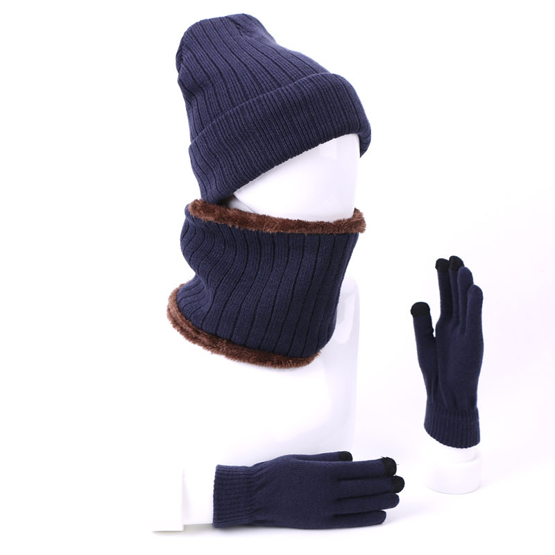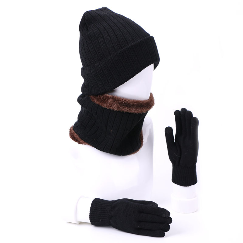 Men's and Women's Fleece Three-Piece Hat, Scarf, and Gloves Touchscreen External Fleece Warm Winter Kit for Riders