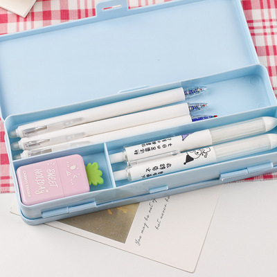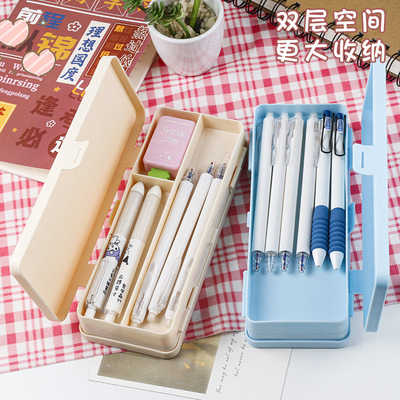 New minimalist MUJI-style double-layer stationery box with large capacity, student storage pen case in macaron color scheme, high aesthetic value
