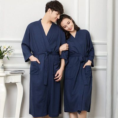春秋季情侶睡袍女吸水浴袍夏季中長款睡袍男薄款浴衣睡衣家居服