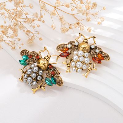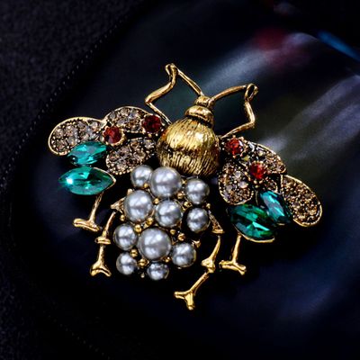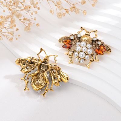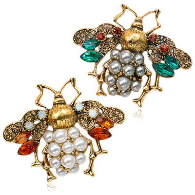 歐美時尚蜜蜂合金胸針胸花衣飾男女式配件珍珠水鑽別針巴洛克新款