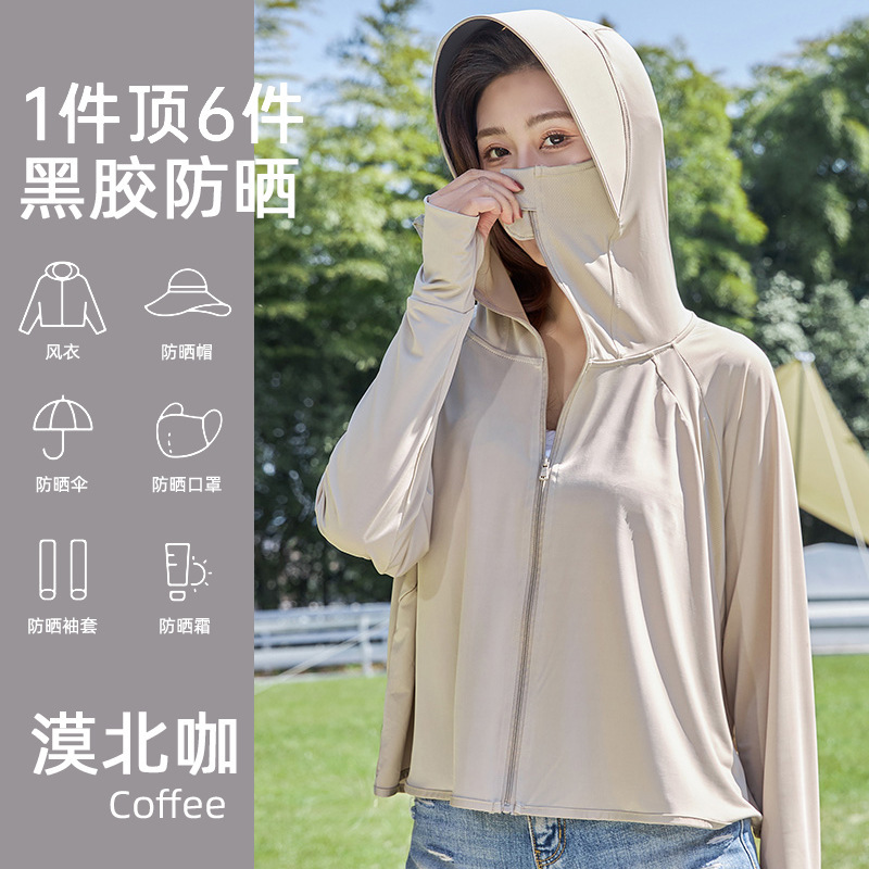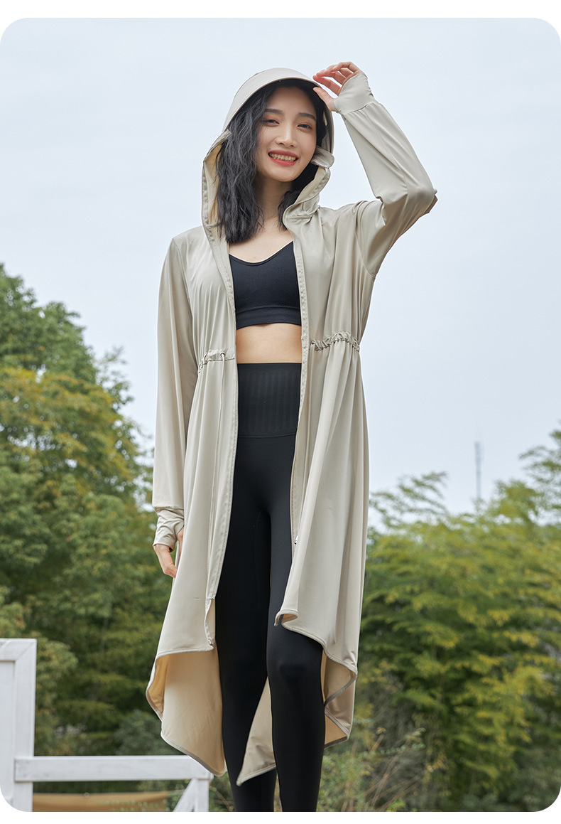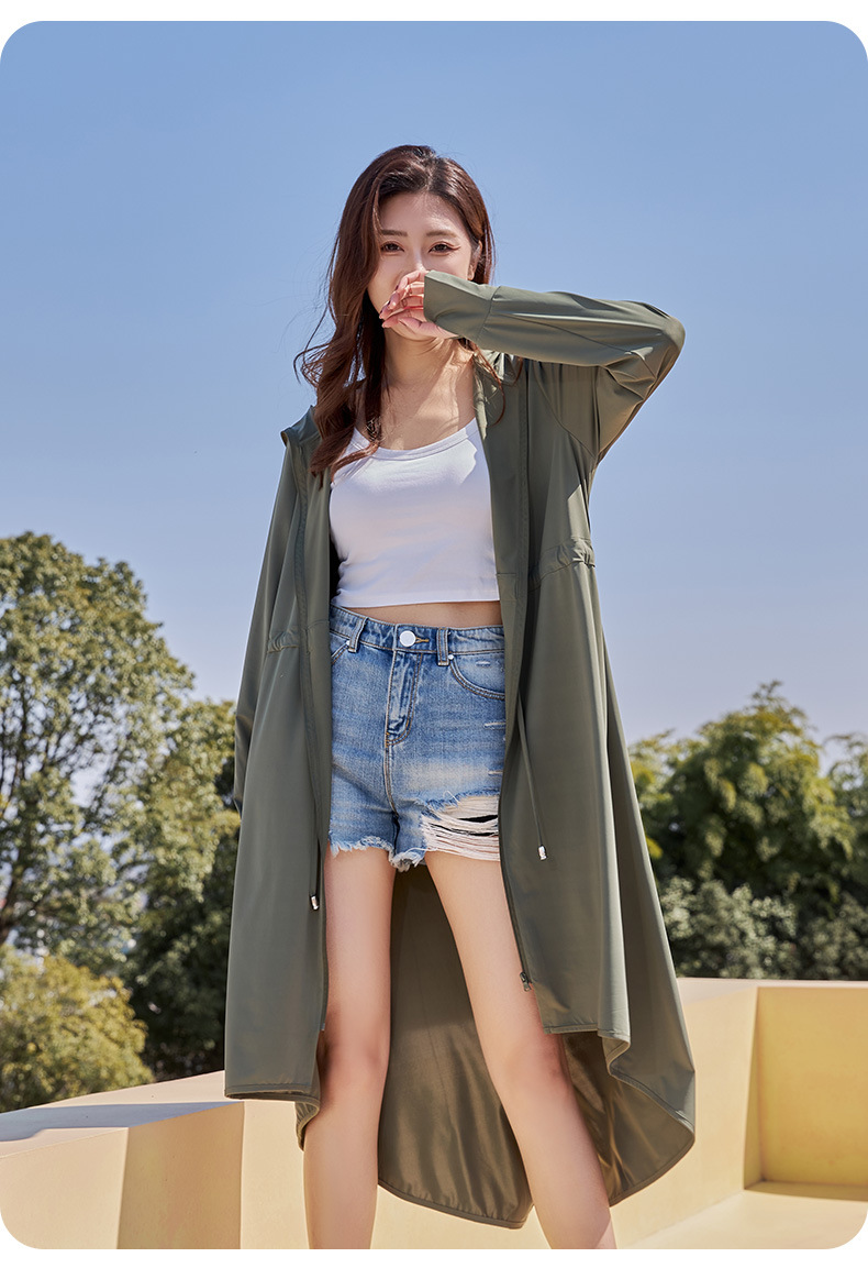 Summer Riding Sun Protection Women Outdoor Travel UV Protection Chilling Ice Silk Cool Sun Shirt with Hood Skin Windbreaker