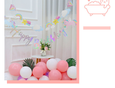 Amazon Unicorn Sparkling Alphabet Banner Cute Flying Clouds Paper Happy Birthday Children's Decorative Background
