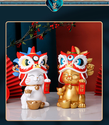 Forbidden City Lion Dance Lucky Cat Resin Ornaments Housewarming Store Opening Congratulatory Gifts Practical Wealth-making Cultural and Creative Resin