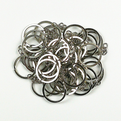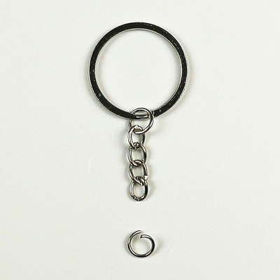 30mm Flat Key Ring with Electroplated Key Ring Chain Open Circle, Bead Handmade DIY Metal Accessory