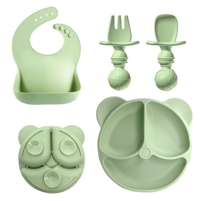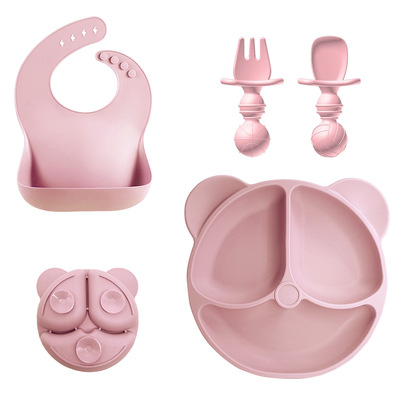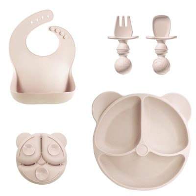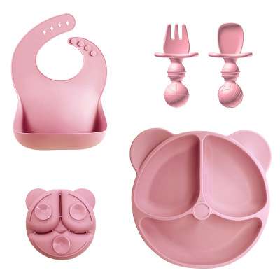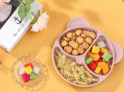 Amazon Baby Food Dish Set Children's Bear Silicone Bowl Maternal and Child Products Food-Grade Silicone