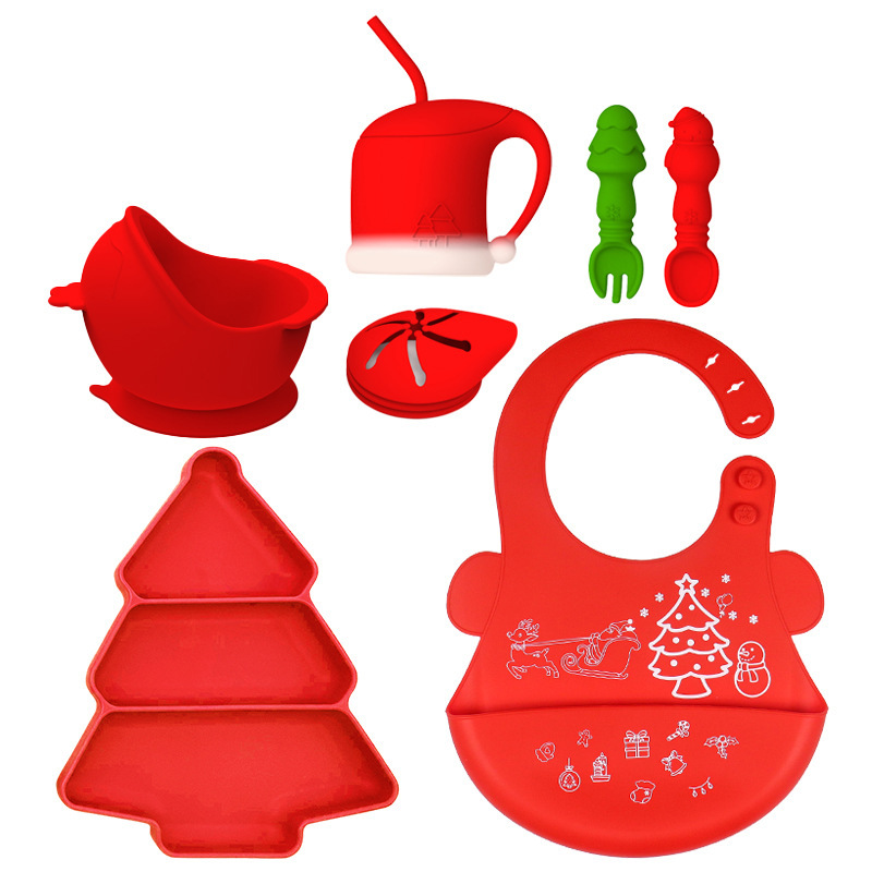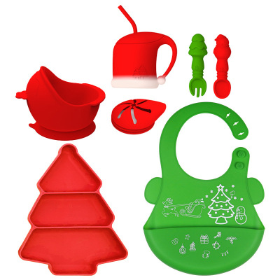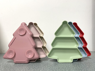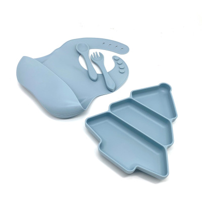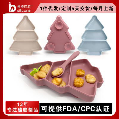 New Christmas Tree Children Silicone Plate Baby Food Bowl Infant Solid Food Bowl Baby Divided Suction Silicone Bowl Tableware Set