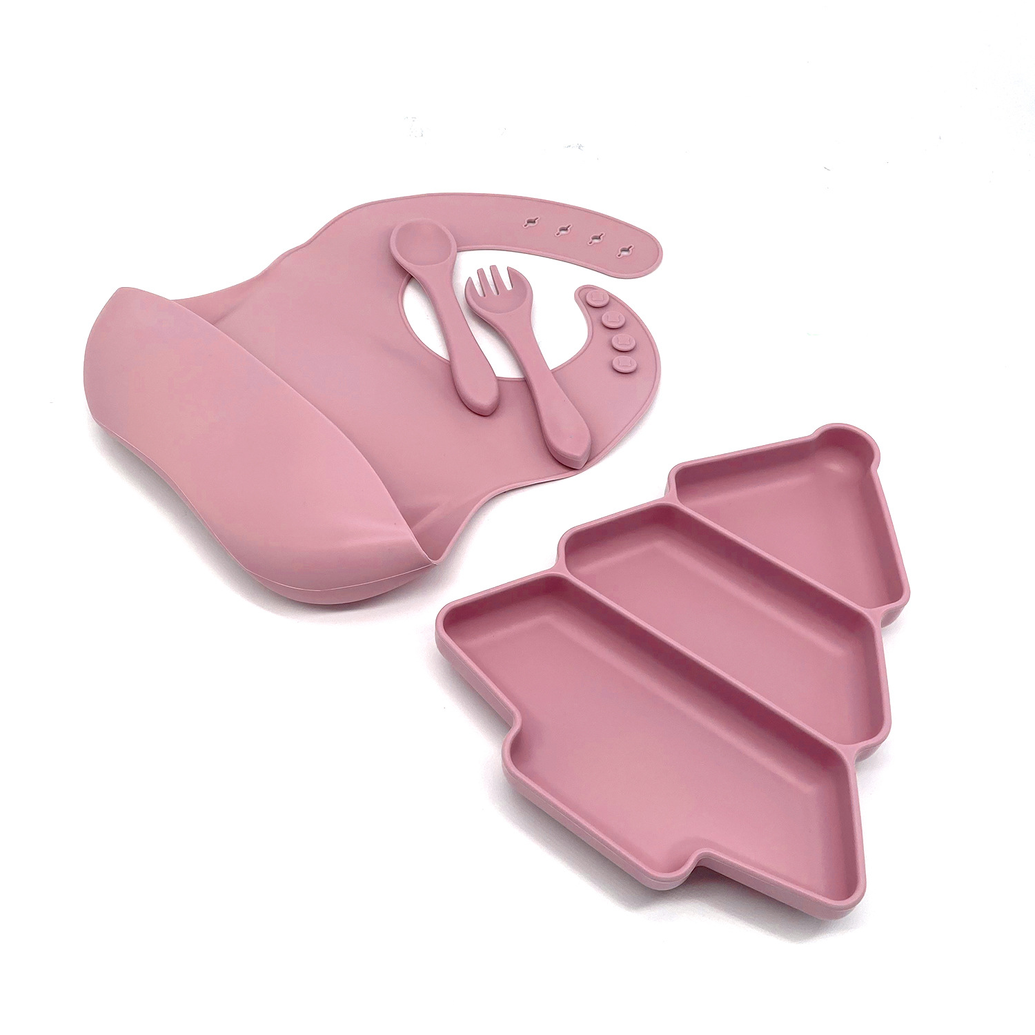 Pastel Pink 4-Piece - Christmas Dinner Plate + Bib + Long Fork and Spoon