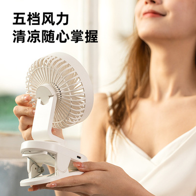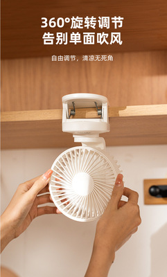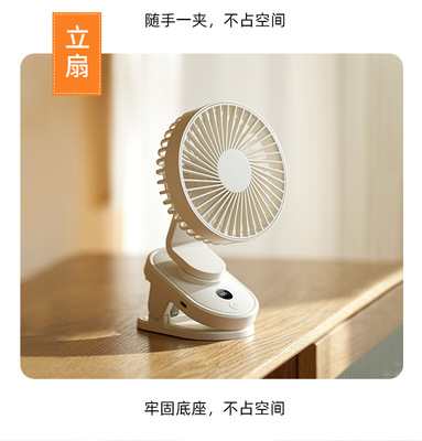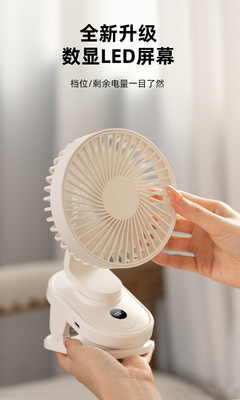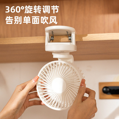 2024 Cross-border New Product Clip Fan, Desktop Dormitory USB Charging Silent Digital Rotating Dual-Purpose Small Fan