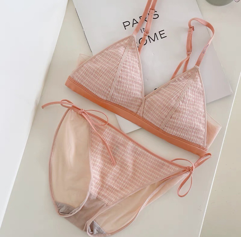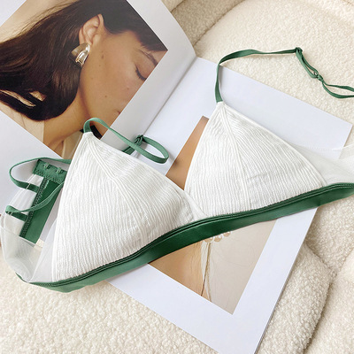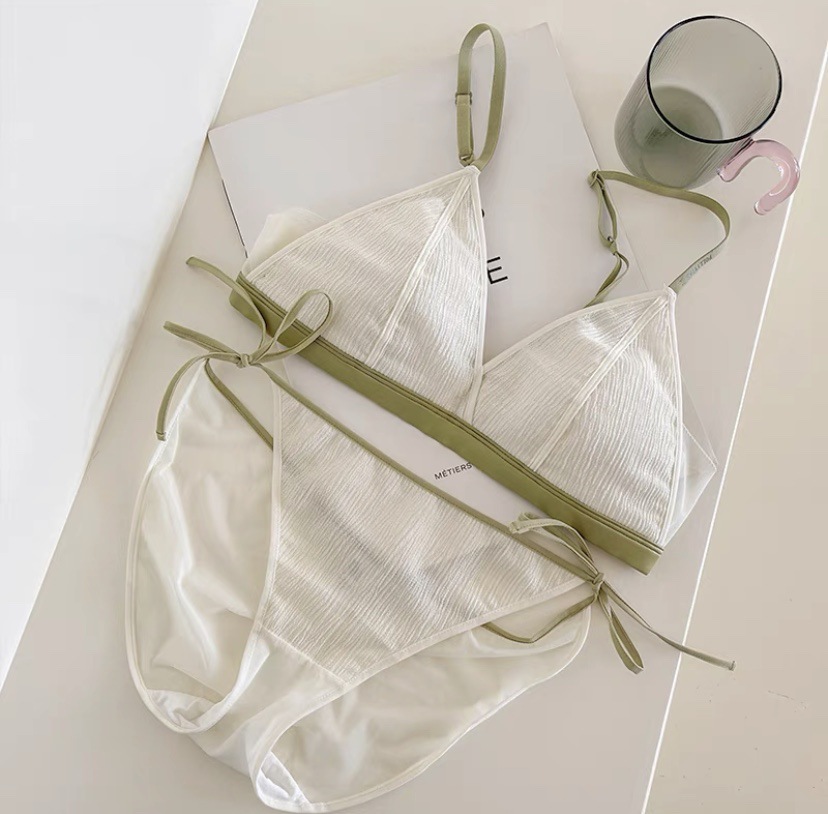 法式性感甜美少女無鋼圈撞色內衣小胸不空杯薄款三角杯文胸套裝