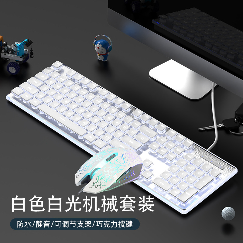 Keyboard and mouse set: white ice blue light + white 6-button Wrangler mouse