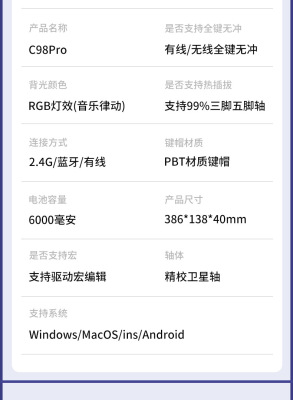 98-key wireless Bluetooth wired three-mode mechanical keyboard DIY customization kit RGB hot-swappable display knob