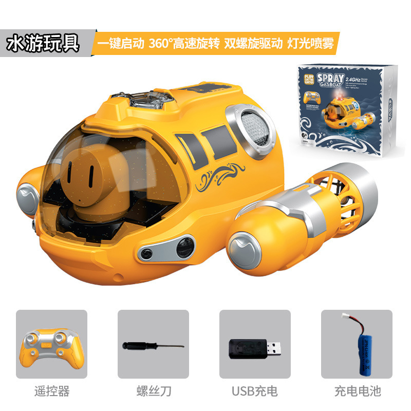 2.4G remote control spray motor boat [English color box] yellow