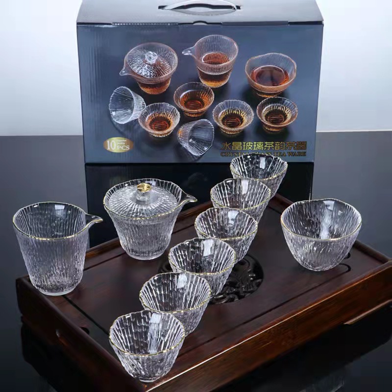 Chinese style glass kung fu tea set tea tasting master cup bamboo thickened fair cup lid bowl tea set gift box wholesale