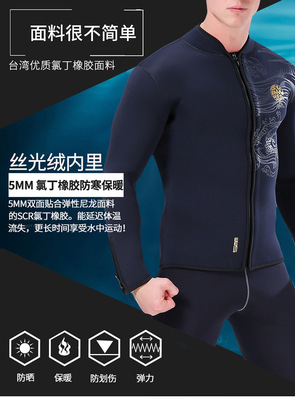 5mm Split Dive Suit Insulated Dive Jacket Top with SLINX Fleece Lining and Thick Dive Surf Wetsuit