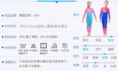 SLINX new children's wetsuit for women 3mm one-piece long-sleeved swimsuit warm diving surfing jellyfish suit
