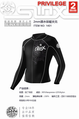 SLINX unisex diving jacket, sun protection long-sleeved wetsuit, outdoor sports warm 2mm split wetsuit