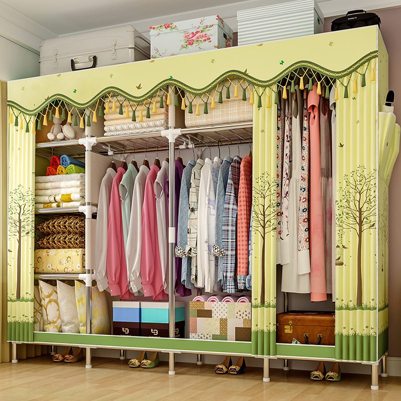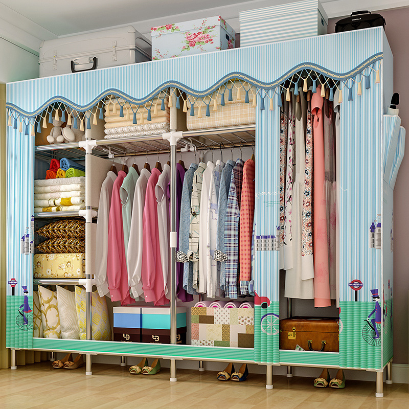 Simple Wardrobe Household Steel Pipe Thickened Reinforced Rental Room Dormitory Storage Clothes Rack Bedroom Assembled Wardrobe