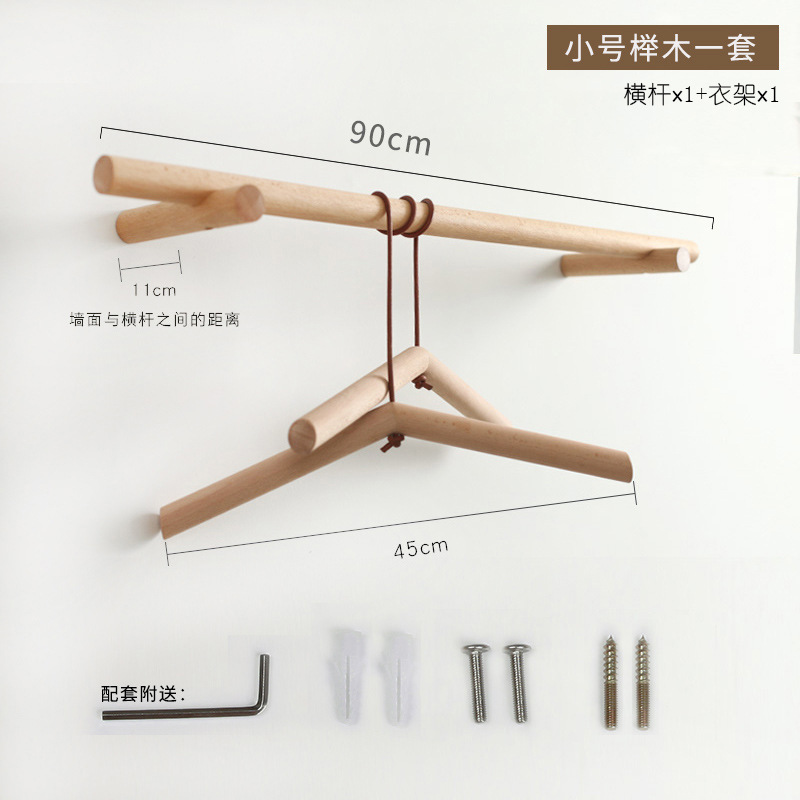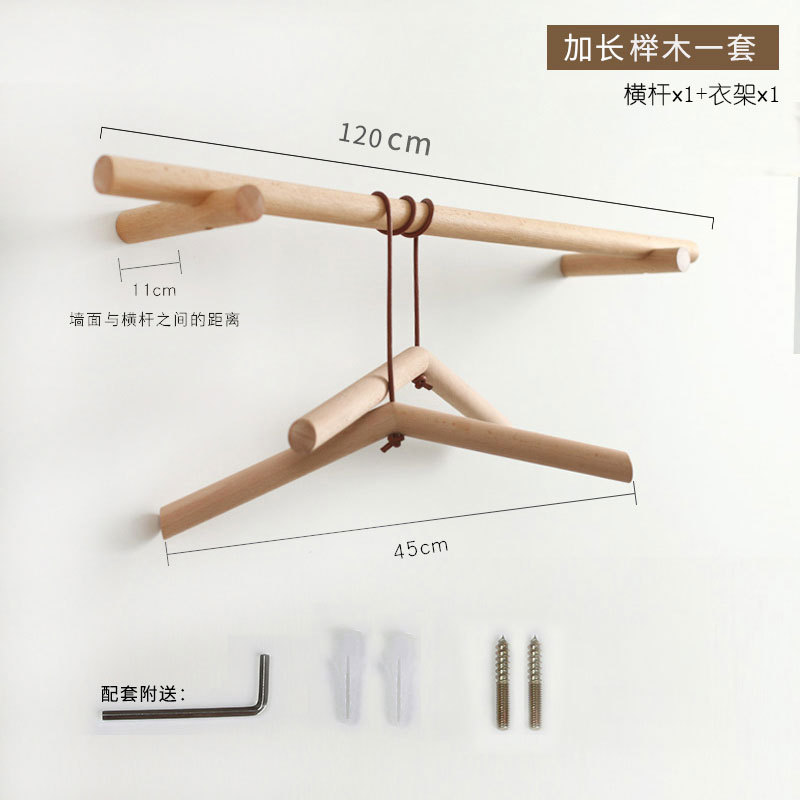 Beech shoulder-to-shoulder coat rack 120 cm 1 set hanger + 1 pair of clothes supports