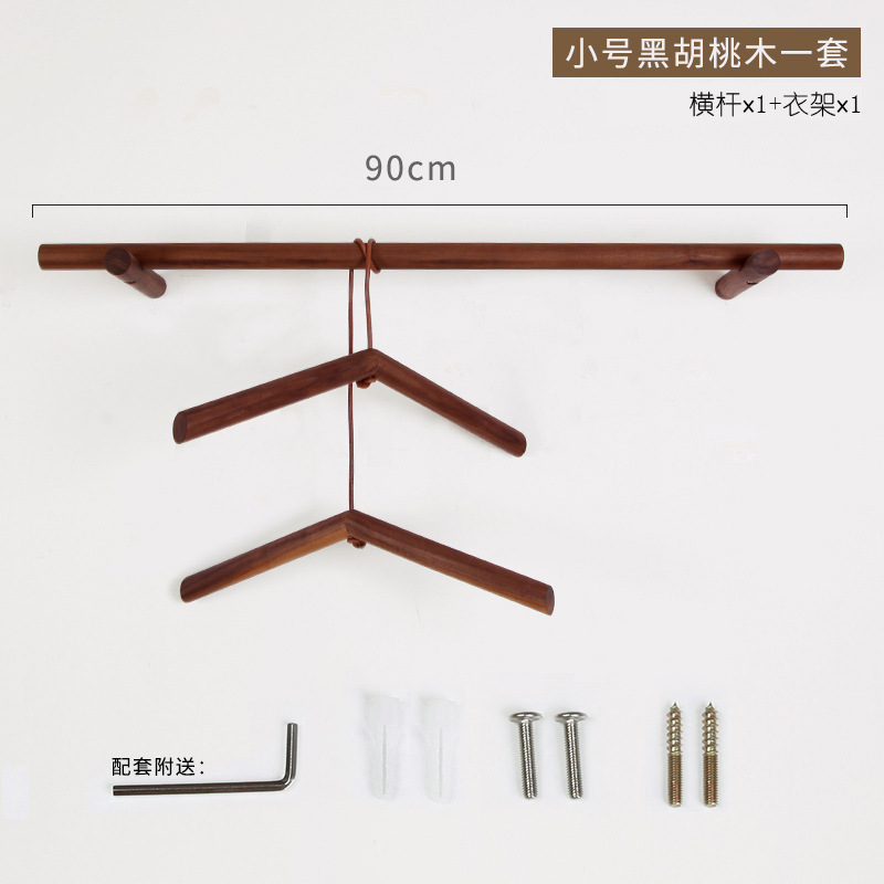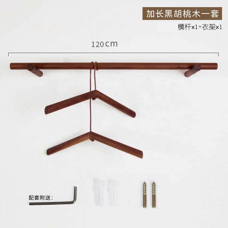 Black walnut shoulder-to-shoulder coat rack 120 cm 1 set hanger + 1 pair of clothes stays