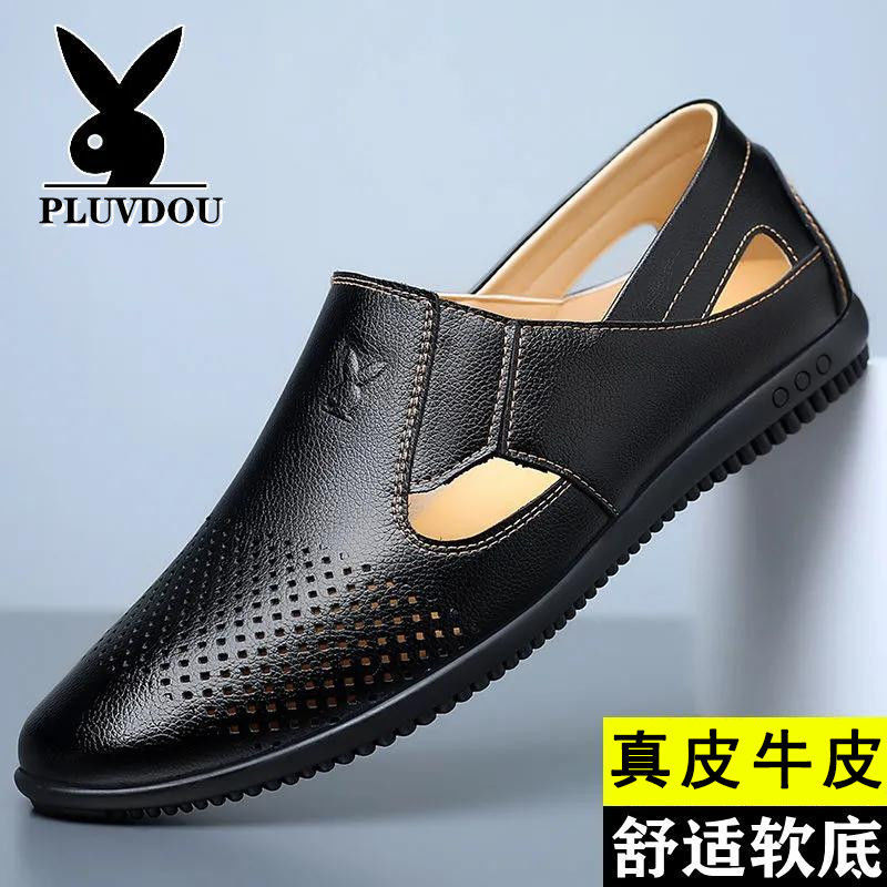 軟皮涼鞋男真皮鏤空透氣大碼涼皮鞋男士2022夏季休閒洞洞鞋男