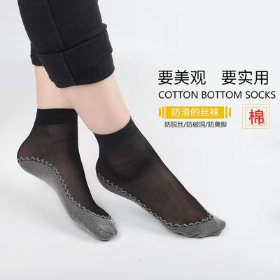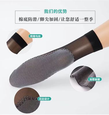 A pair of women's short socks for summer, autumn, and winter, with cotton soles, sweat-absorbent, non-slip, flesh-colored, non-snagging mid-calf thin socks for drop shipping
