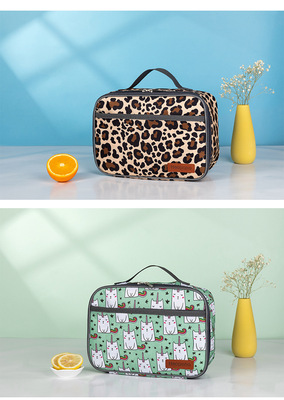 2022年亞馬遜新款時尚豹紋手提午餐包 熱銷歐美印花學生便當包