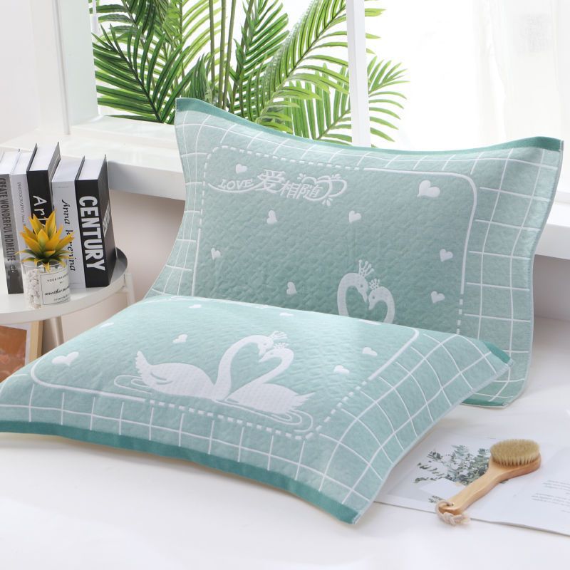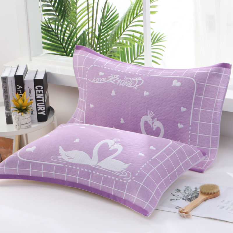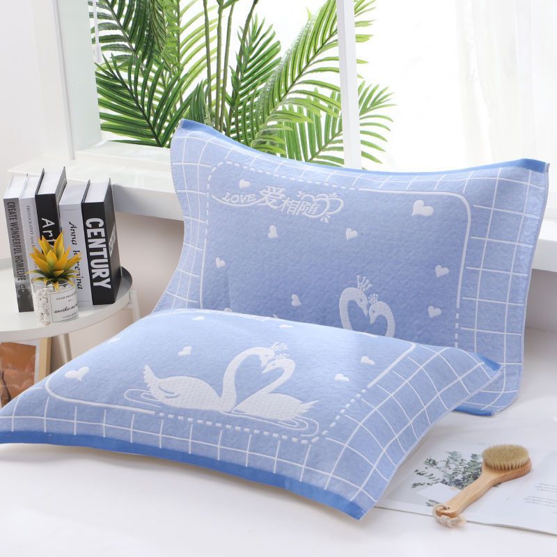 Pillow towel with three layers of gauze cotton adult jacquard household cartoon student gauze pillow towel breathable and soft wholesale