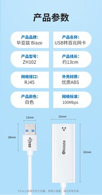 Biya USB to Fast Ethernet RJ45 Network Adapter Cable Converter Computer External Network Port