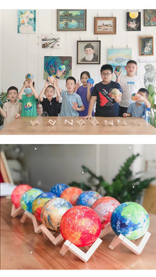 手繪星球燈led小夜燈材料包發光3d手工彩繪月球燈兒童擺地攤玩具