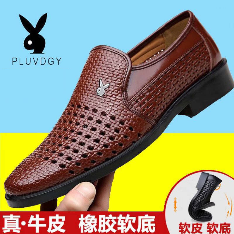 【100%全牛皮】斷碼男士涼鞋厚底耐磨夏季鏤空透氣爸爸鞋