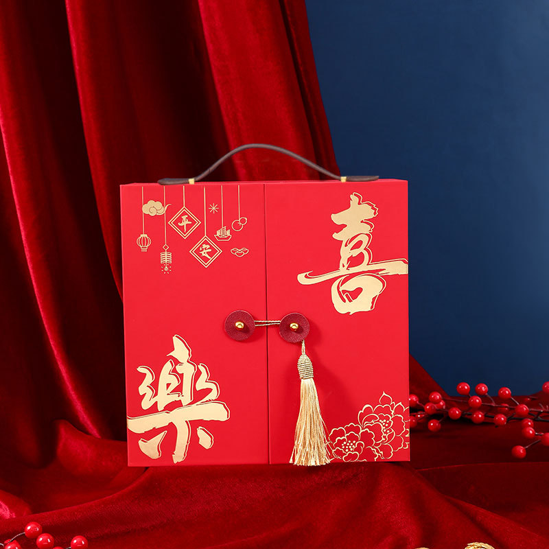 Chinese wedding accompaniment gift box, bridesmaid high-end gold stamping tassel gift box, wedding banquet return gift, wedding candy box