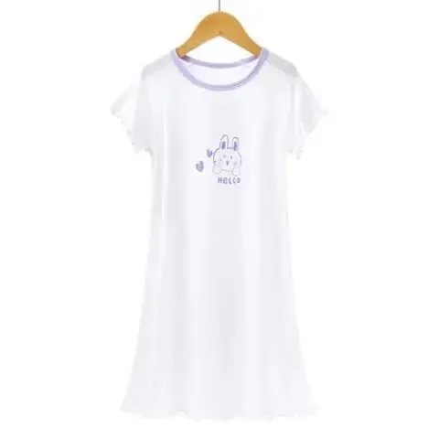 Ladies' Summer Sleep Gown Ice Silk Modal Children's Pajamas Summer Princess Style Girls Medium to Large Children Short Sleeve Homecoming Clothes