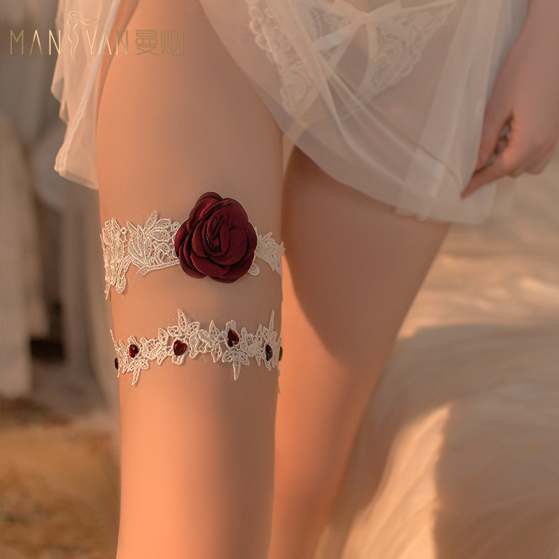 曼煙情趣配飾性感蕾絲玫瑰腿環搭配情趣內衣制服套裝243