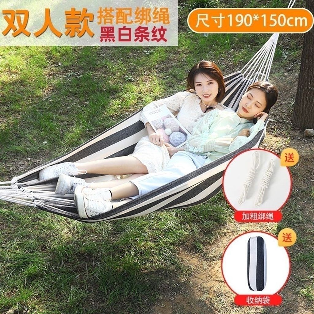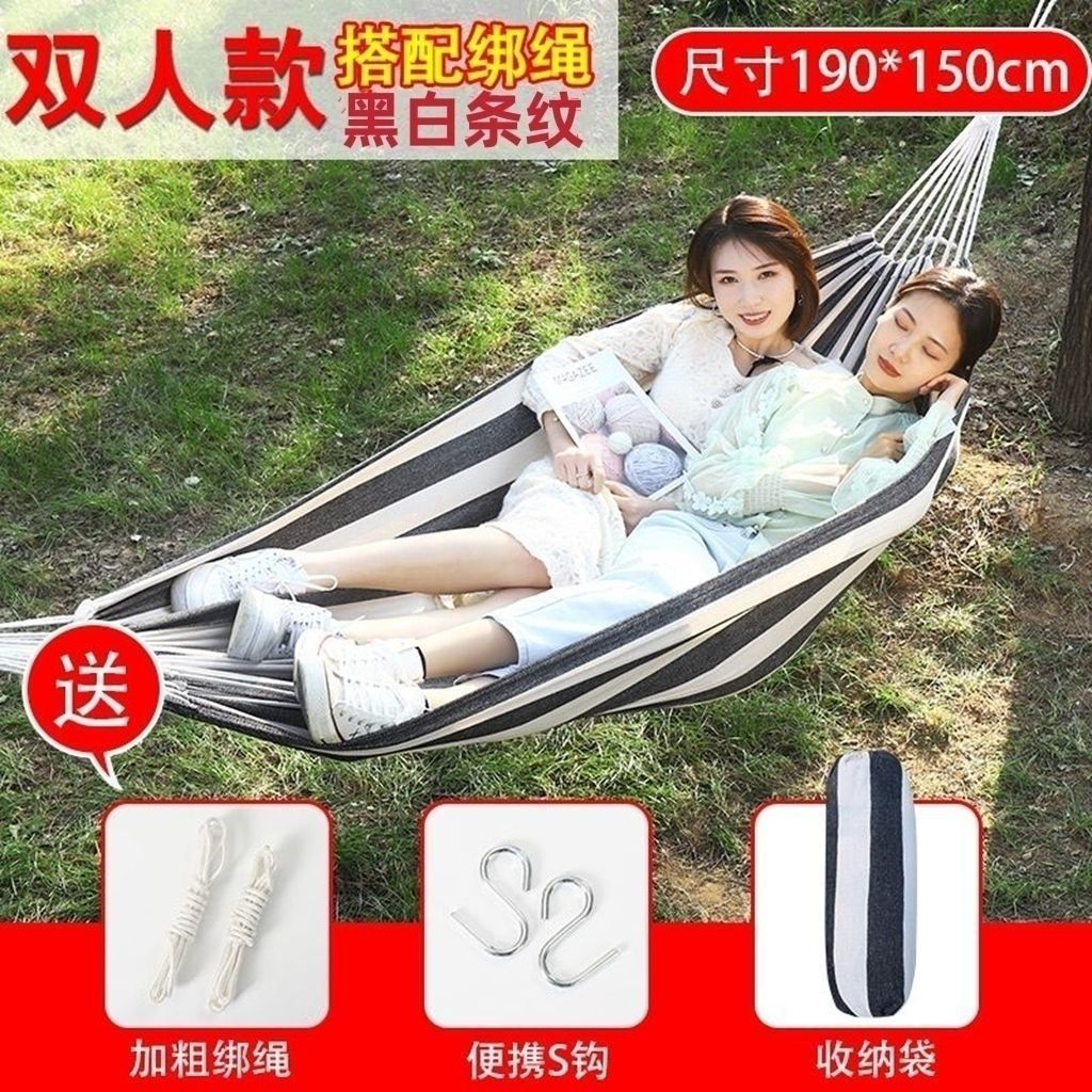 Thick Black and White Double 260*150 - No Curved Wood + Bag Binding Rope S Hook with 6-meter Rope