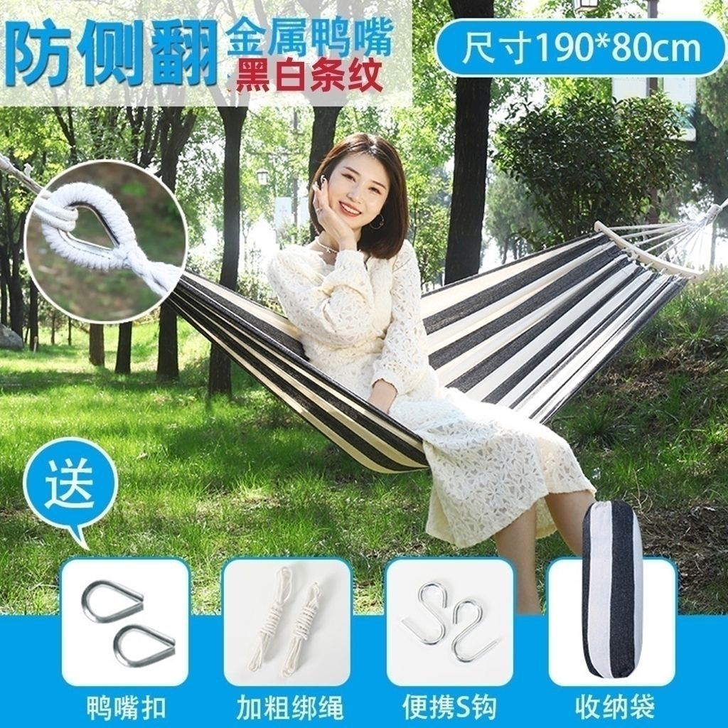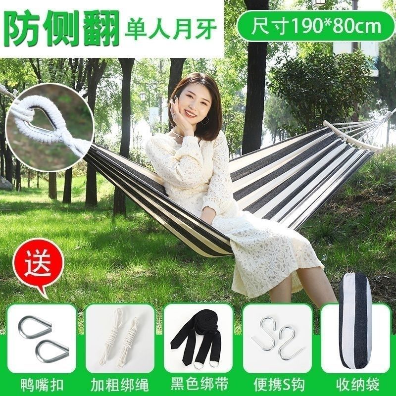 Thick Black and White Single 260*80 - No Curved Wood + Bag Binding Rope S Hook with 6-meter Rope