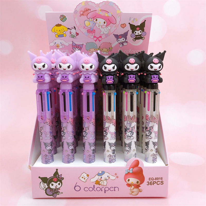 卡通庫魯米6色圓珠筆3D硅膠公仔頭庫洛米六色筆學生多色手賬筆