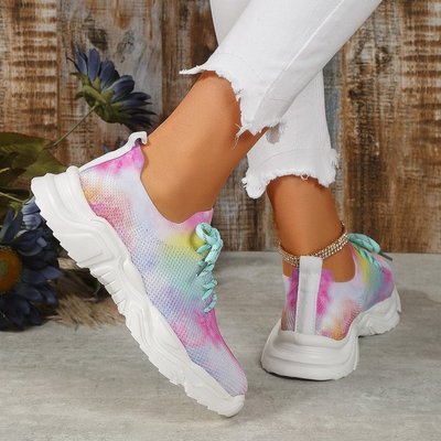 外貿跨境休閒花朵運動單鞋女2023新款時尚平底單大碼翹頭系帶休閒