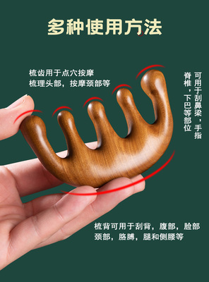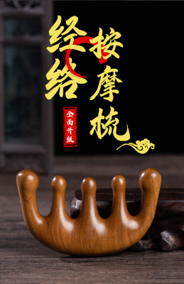 Golden silk green sandalwood massage comb whole wood comb head meridian comb neck face scraping large wide teeth static electricity female hair loss