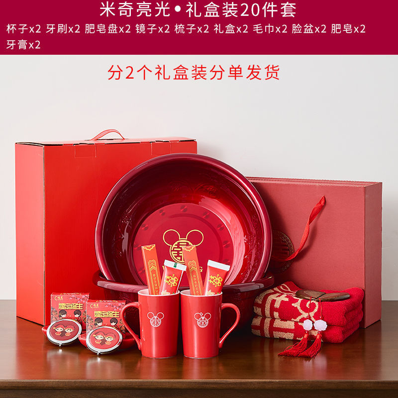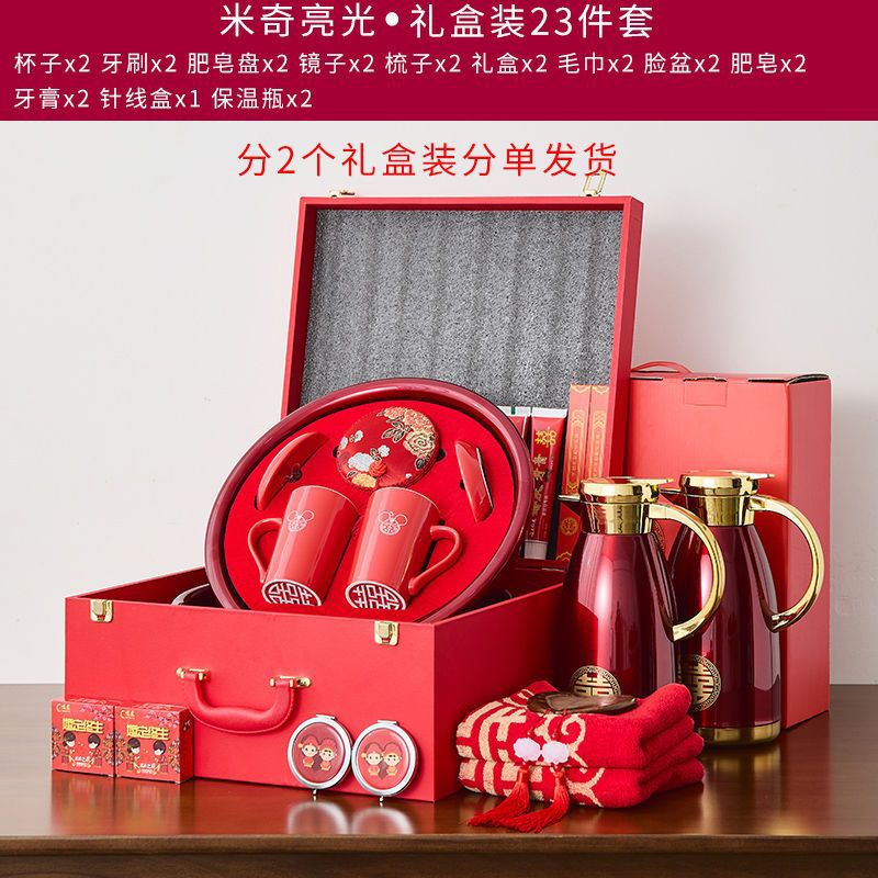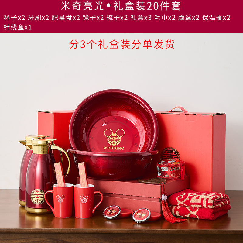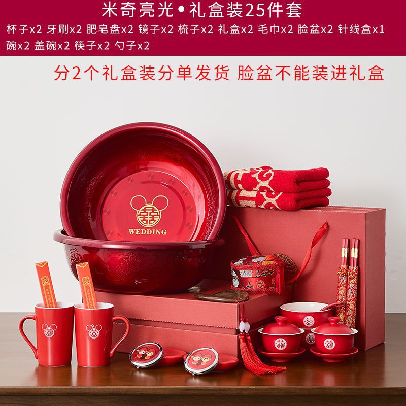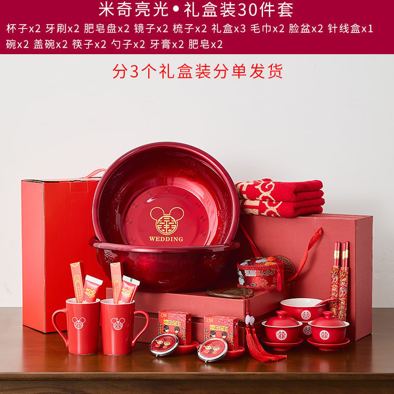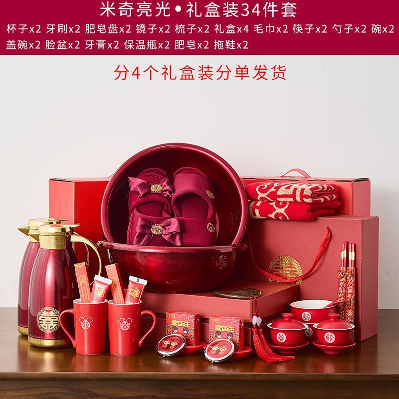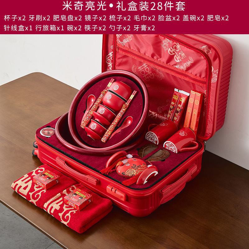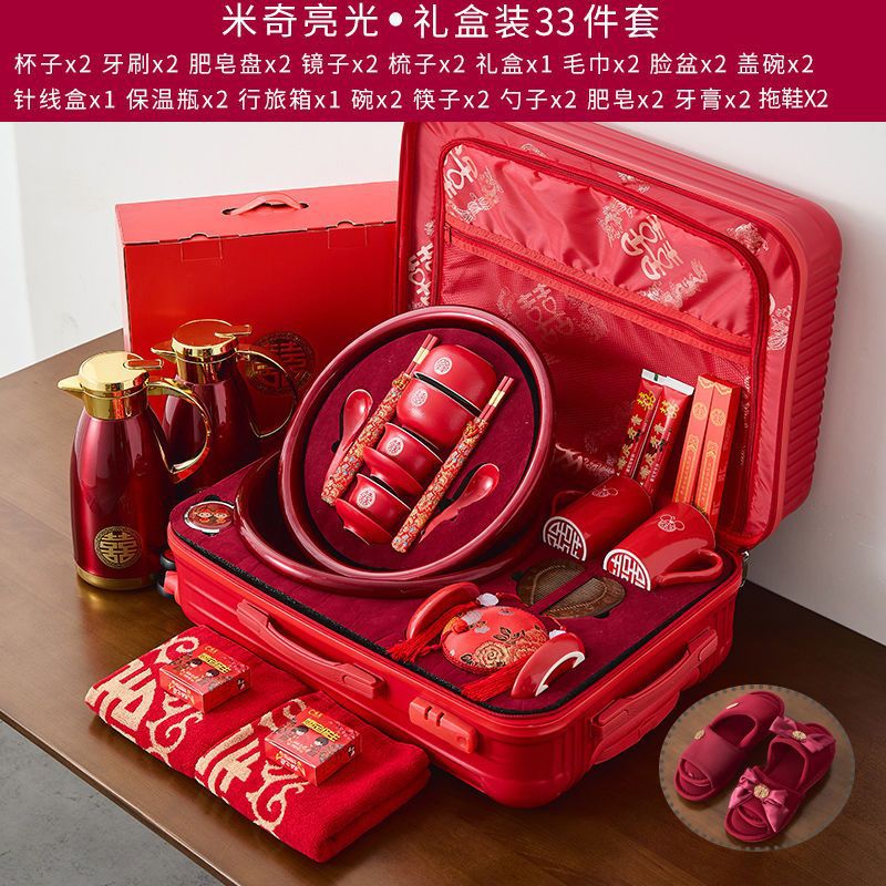 A comprehensive collection of high-end wedding supplies for the bride and groom, dowry preparations, wash basin, red basin, wedding dowry set